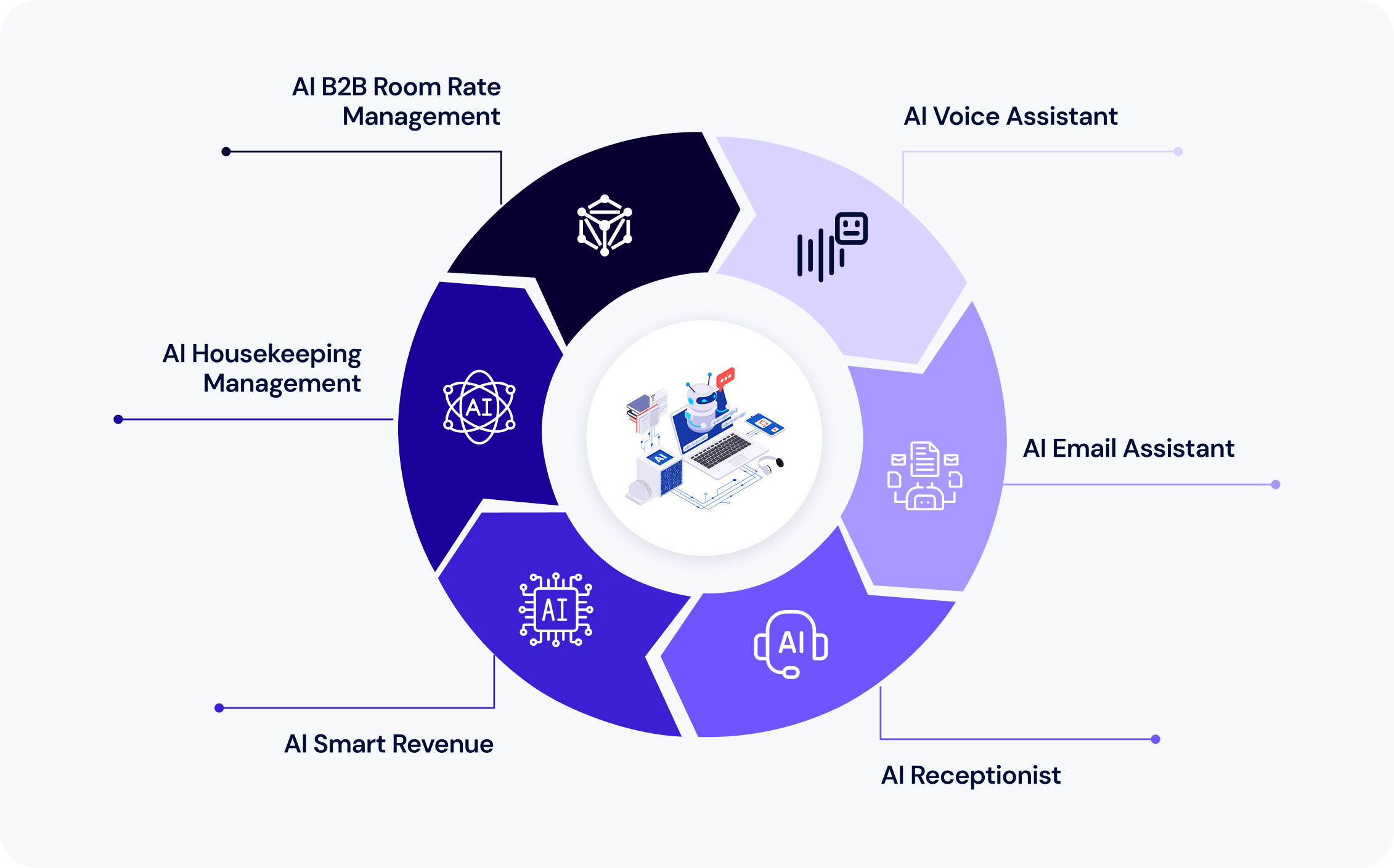 We are here to deliver an intuitive, ‘cloud native platform’ with specific modules designed to cater to all your hotel management needs – from core PMS (Property Management) & Channel Management system to AI-driven solutions, Restaurant POS Management, Inter-booking marketplace and more!